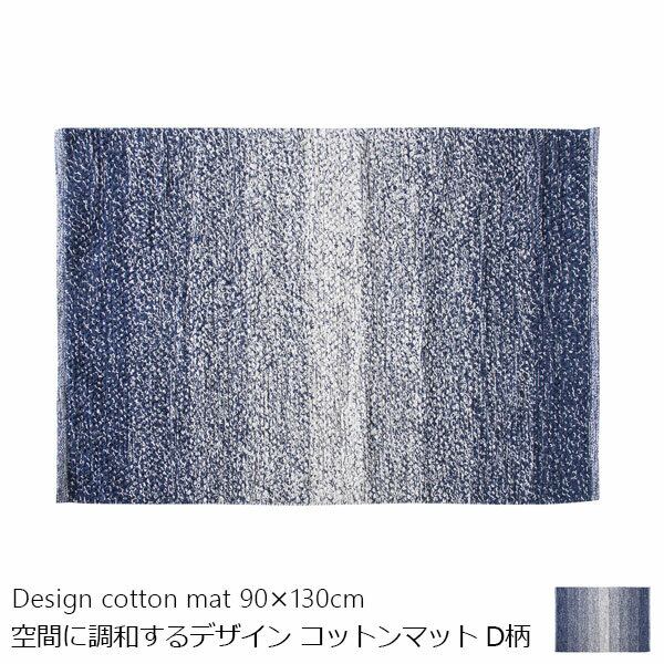 インテリアに調和するデザインのコットンラグ ボーダー柄 グラデーション【90×130cm】